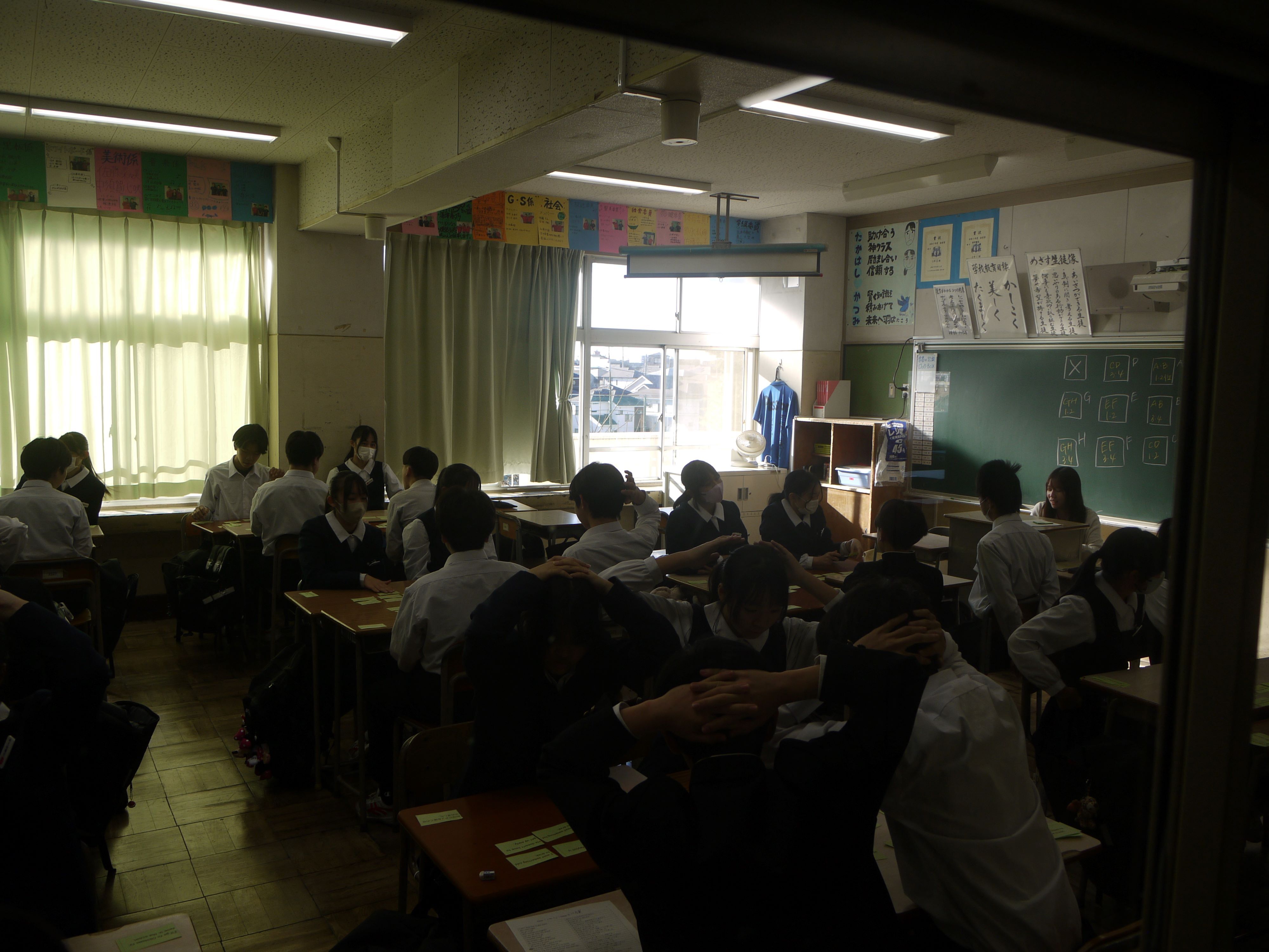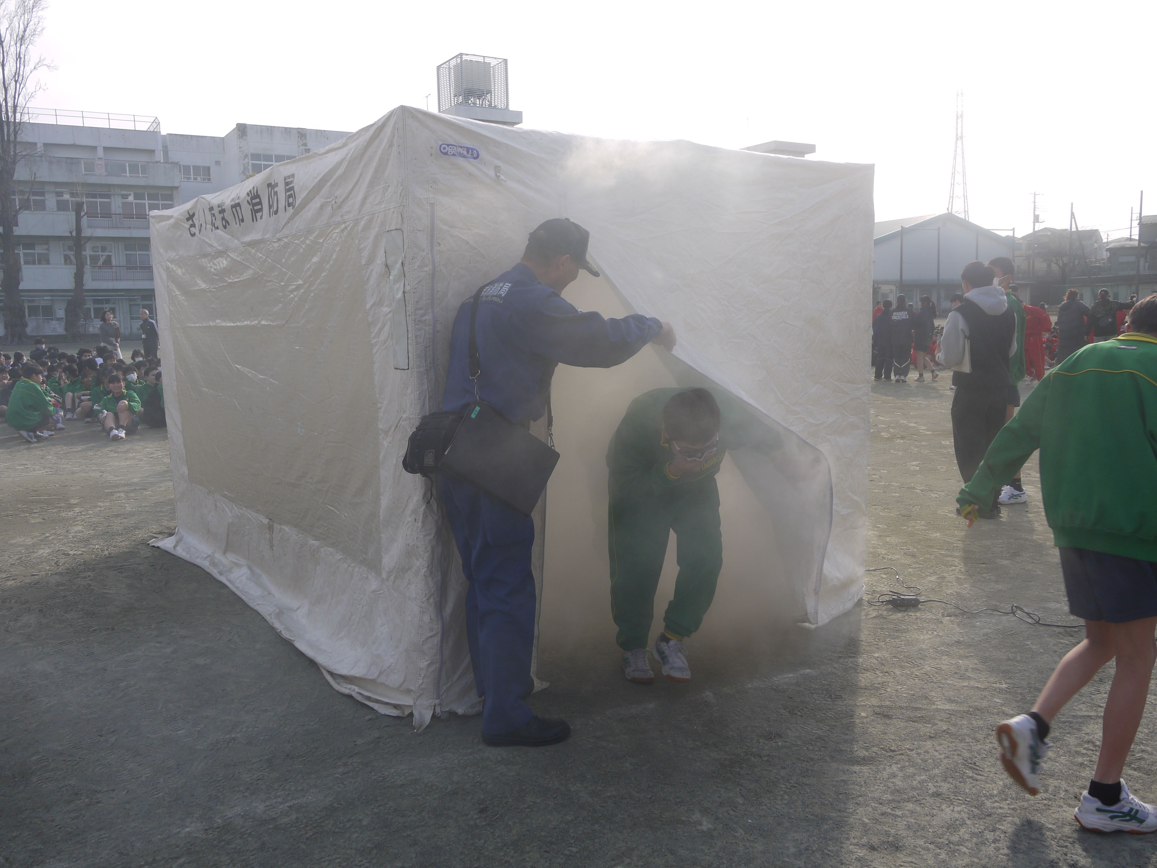 1月15日(木)に避難訓練を行いました。真剣に、迅速に取り組めました。消防署員の方々にご協力いただき、ご指導していただきながら、煙体験、起震車体験、消火体験を学年ごとに分かれて行いました。消防署員の方からのご指導では、「災害が起きた時には、皆さんの笑顔でぜひ地域を支えてほしい」「みんなで命を守る」というお話をしていただきました。いつ起きるか分からない災害、訓練でおわることを祈りつつ、いざというときは、落ち着いて行動できるよう、日ごろから心がけていましょう。