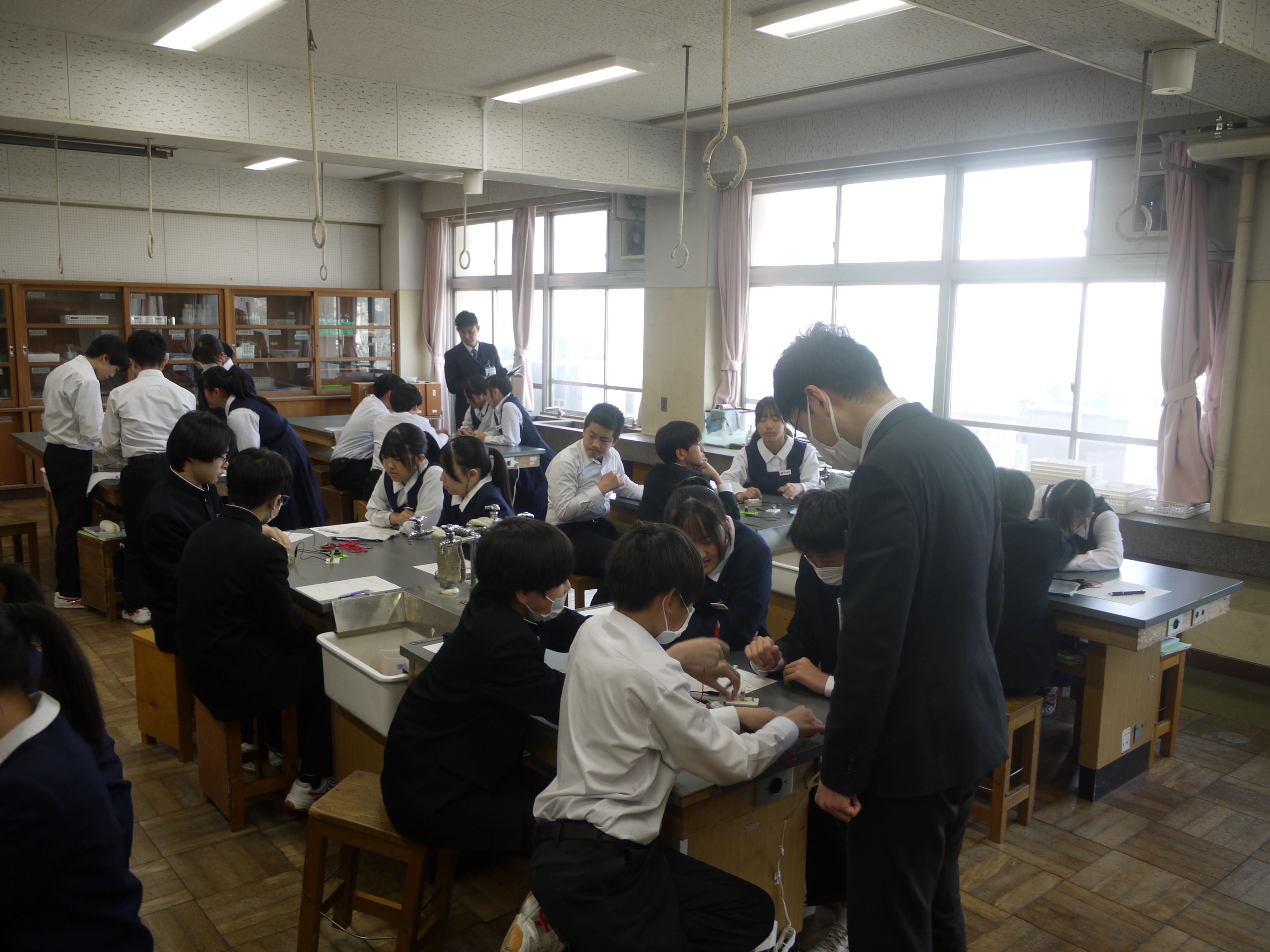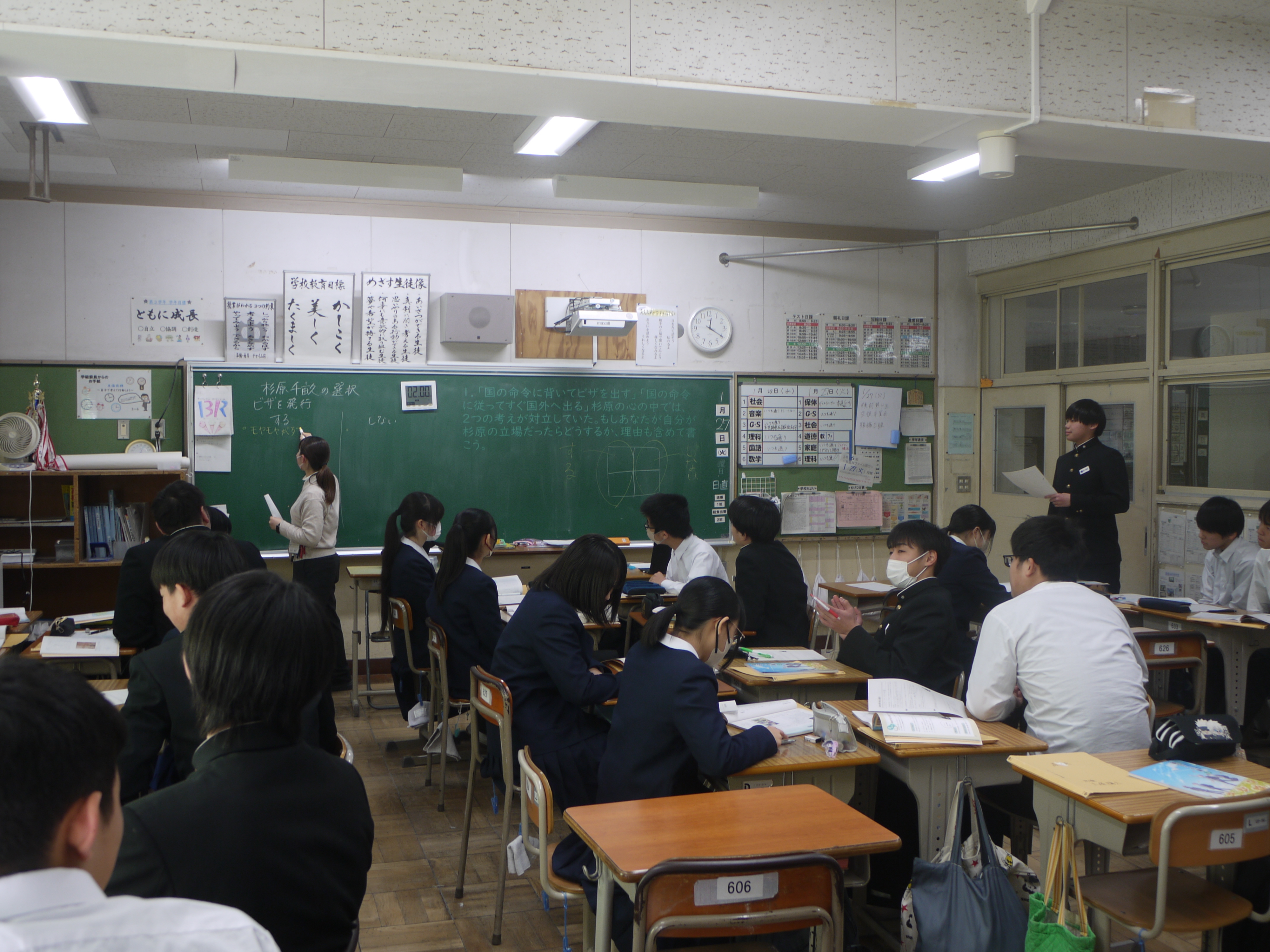 令和8年1月19日(月)教育委員会の方々に来校していただき、各教科の授業を参観してもらい、ご指導をいただきました。生徒達は、積極的に授業に参加していました。放課後には、全体会を行った後、各教科ごとに分科会が行われました。授業力向上にむけて、厳しいお言葉をもらいながらも、明日からの授業実践に生かせる具体的なご助言をいただきました。子どもたちの学力向上のために、改めて身が引き締まる一日となりました。