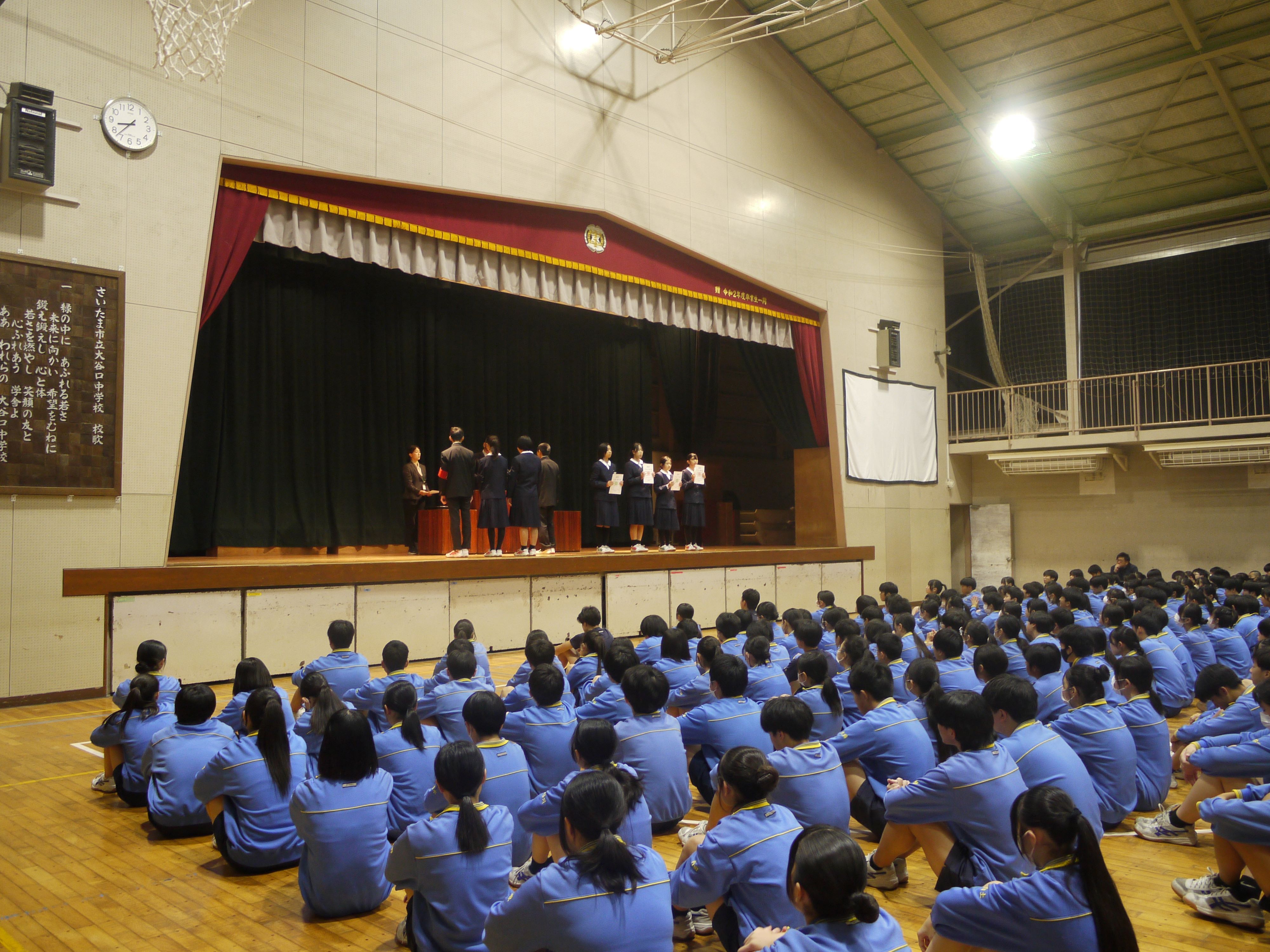 「つぼみの日」はじめの会。生徒会役員が立派につとめました。