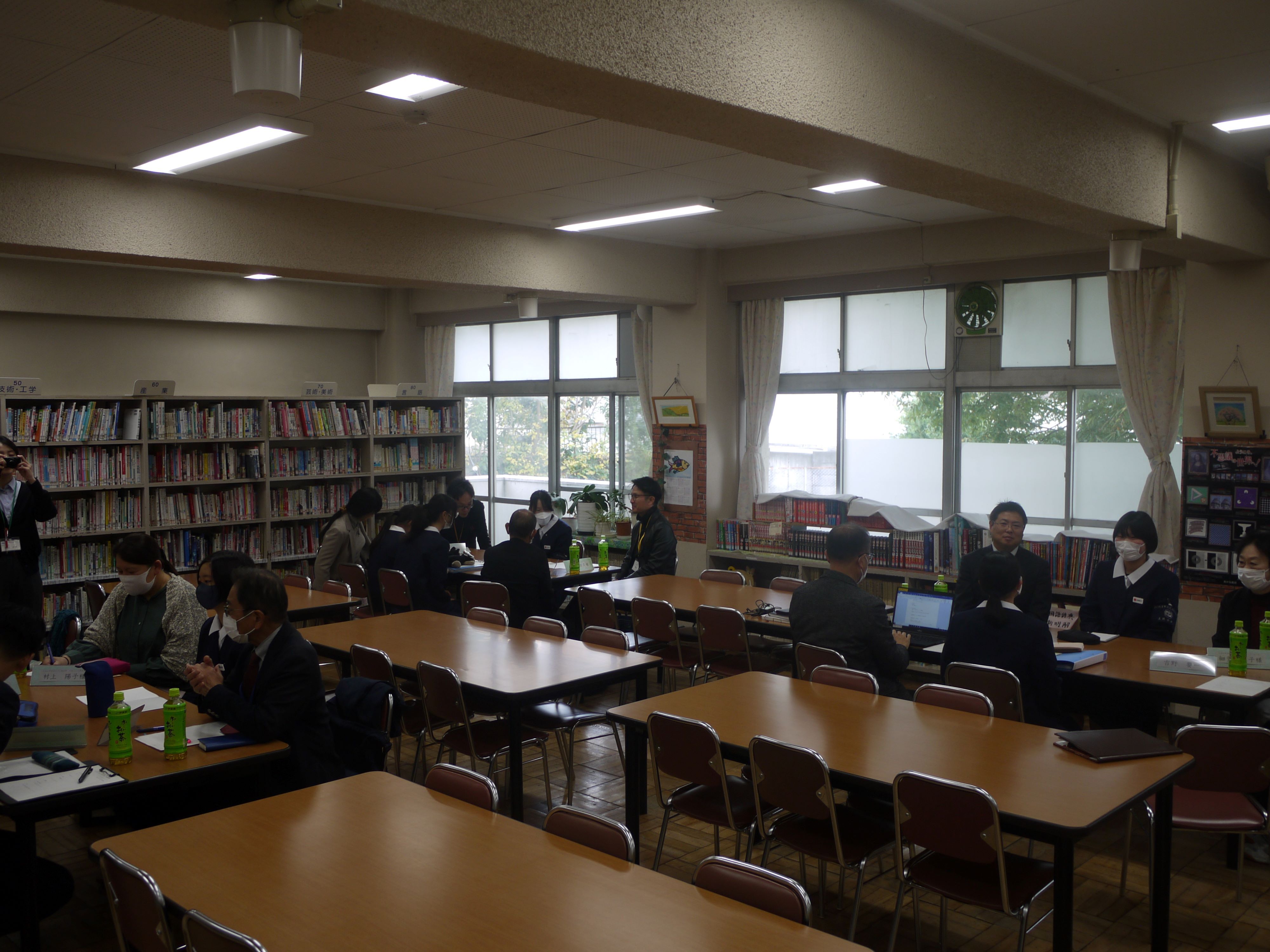 11月11日(火)に第2回学校運営協議会が行われました。今回の会議には、生徒会の役員8名にも参加してもらい、来年度に向けての話し合いを行い、活発な意見交換がなされていました。またその後の会食にも生徒会役員に参加してもらい楽しく話をしながら給食をいただきました。運営委員の皆様からも、生徒と話ができる機会がもててうれしかったです、とのお言葉をもらいました。今後も、地域と学校が子どもを中心とした繋がりで教育活動を進めてまいります。
