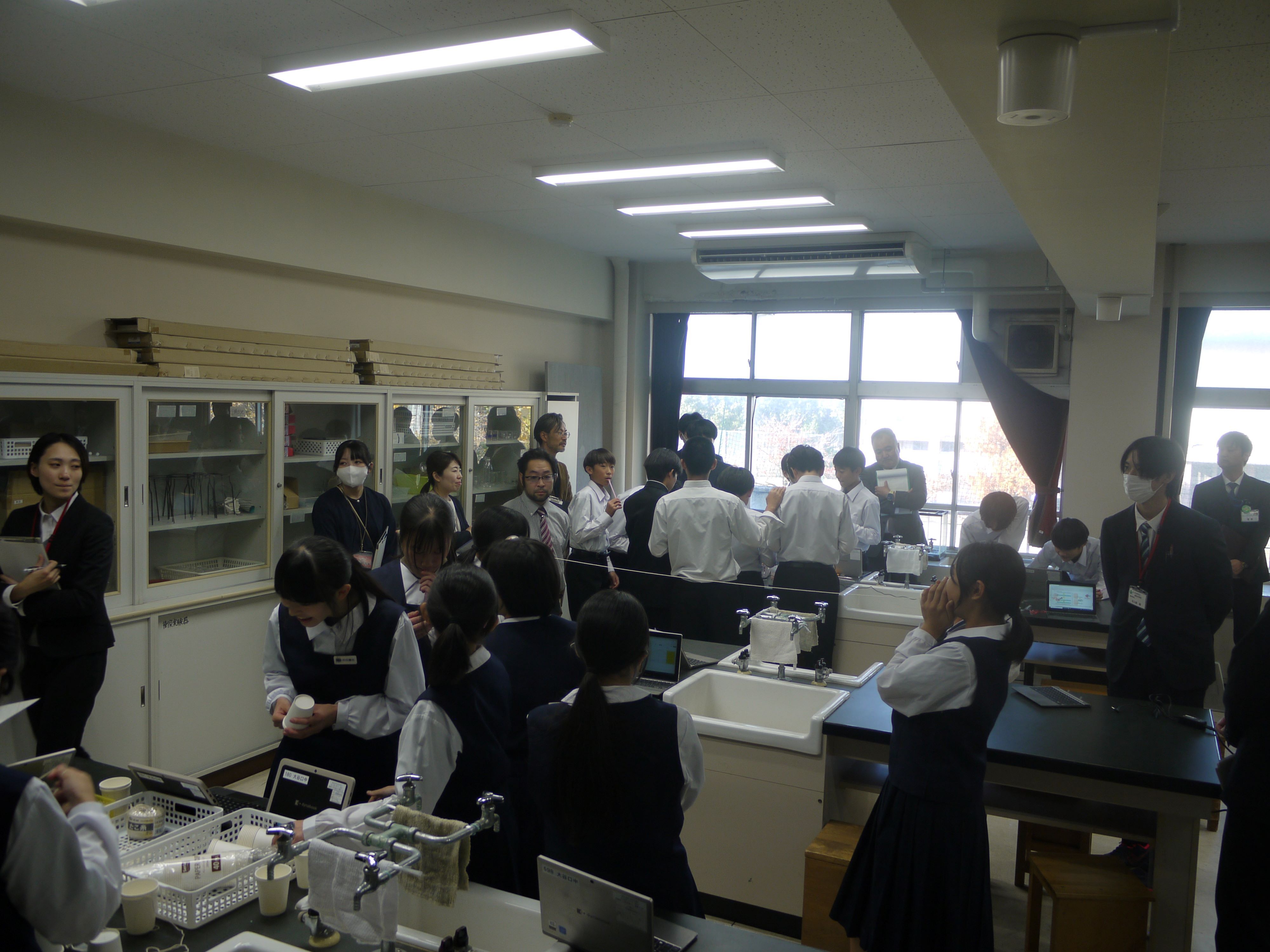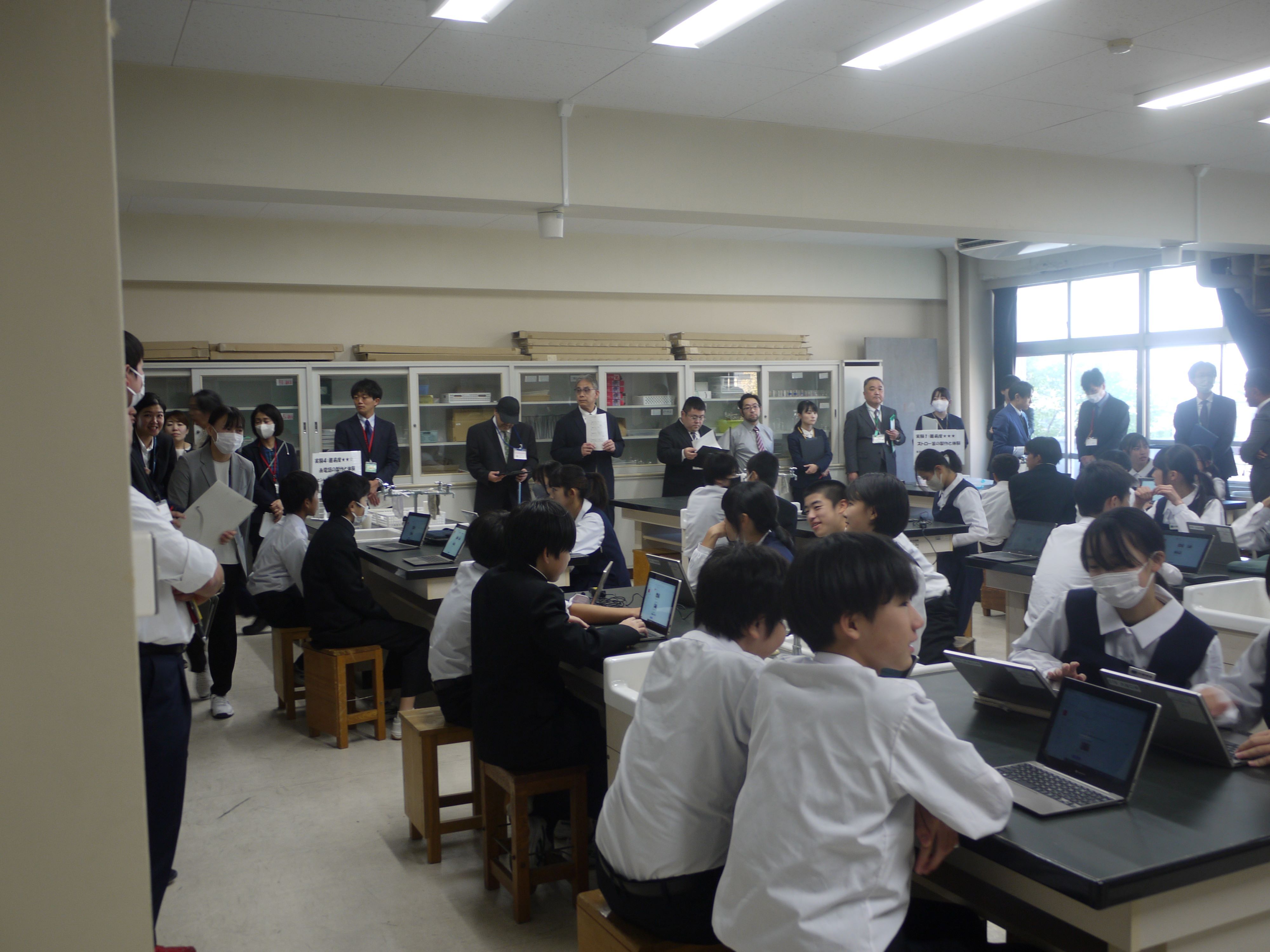 令和7年11月20日(木)にさいたま市の教職員が一斉に各学校に行き、研修を行う「市教育研究会研修大会」があり、本校が会場校となり、1年1組の理科の授業が行われました。授業の課題は「音の伝わり方」について考察する内容で、5つの実験道具から各自で選び、実験して結論を出す授業でした。多くの先生方が参観する中、生徒たちは積極的に活動し、いい表情で取り組んでいました。