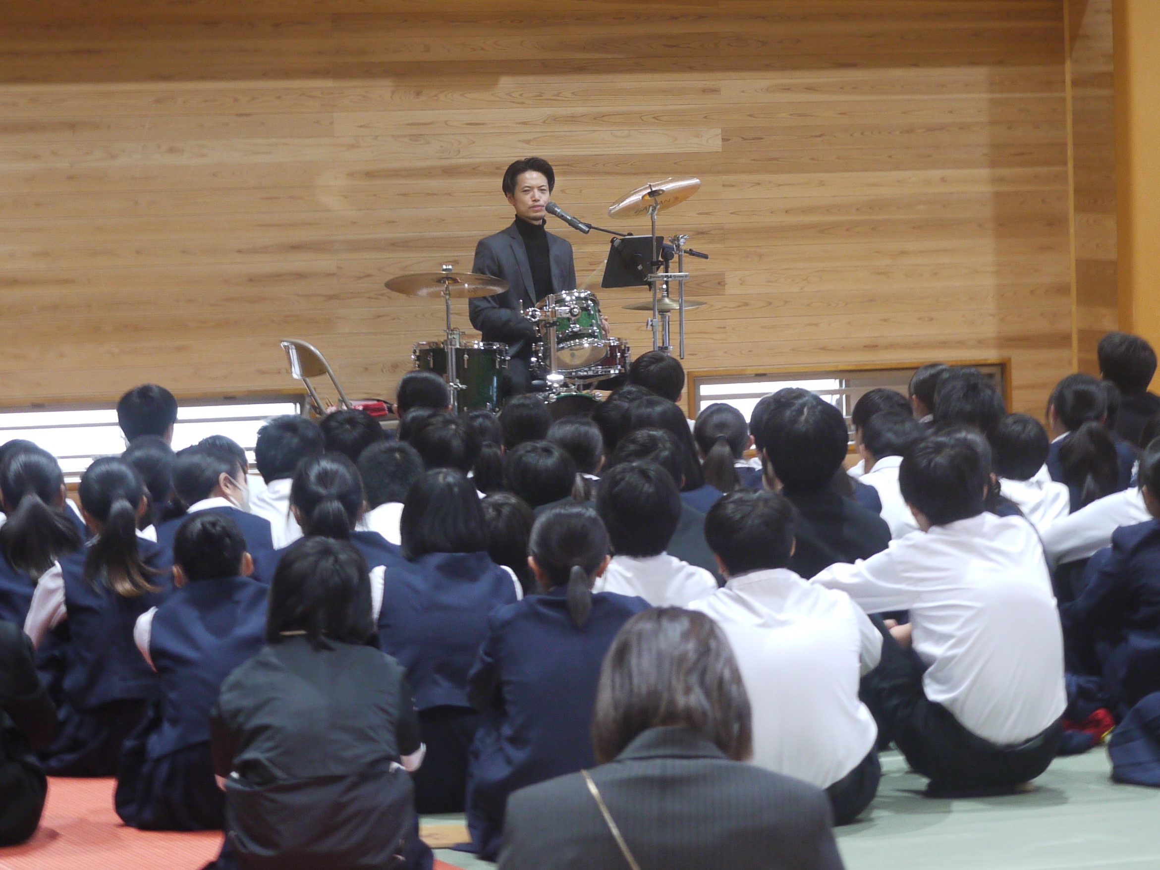 令和7年11月19日(水)に小中合同音楽会がありました。大谷口中からは、最優秀賞に輝いた3年6組が代表として参加しました。素晴らしい歌声を披露したという報告を受けました。また、1年生は、校外学習にむけて動き出しています。2年生は、「夢工房 未来(みら)くる先生 ふれ愛推進事業」の取組において、ミュージシャンでドラム講師の方にきていただき、プロの演奏を肌で感じ、将来への生き方について学びました。また、3年生は、これからの受験にむけての流れを確認していました。それぞれの学年が次のステージ、学年としての成長をするための取り組みを行っていました。