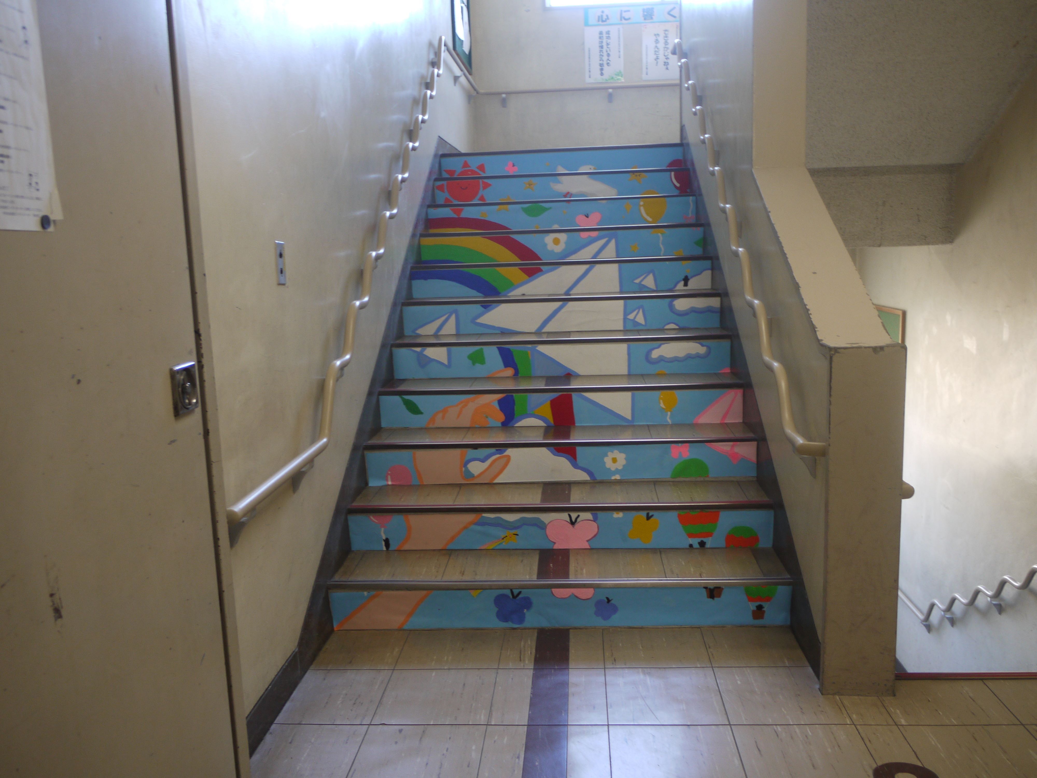 美術部が作成した階段アート。校舎内が華やかになりました。