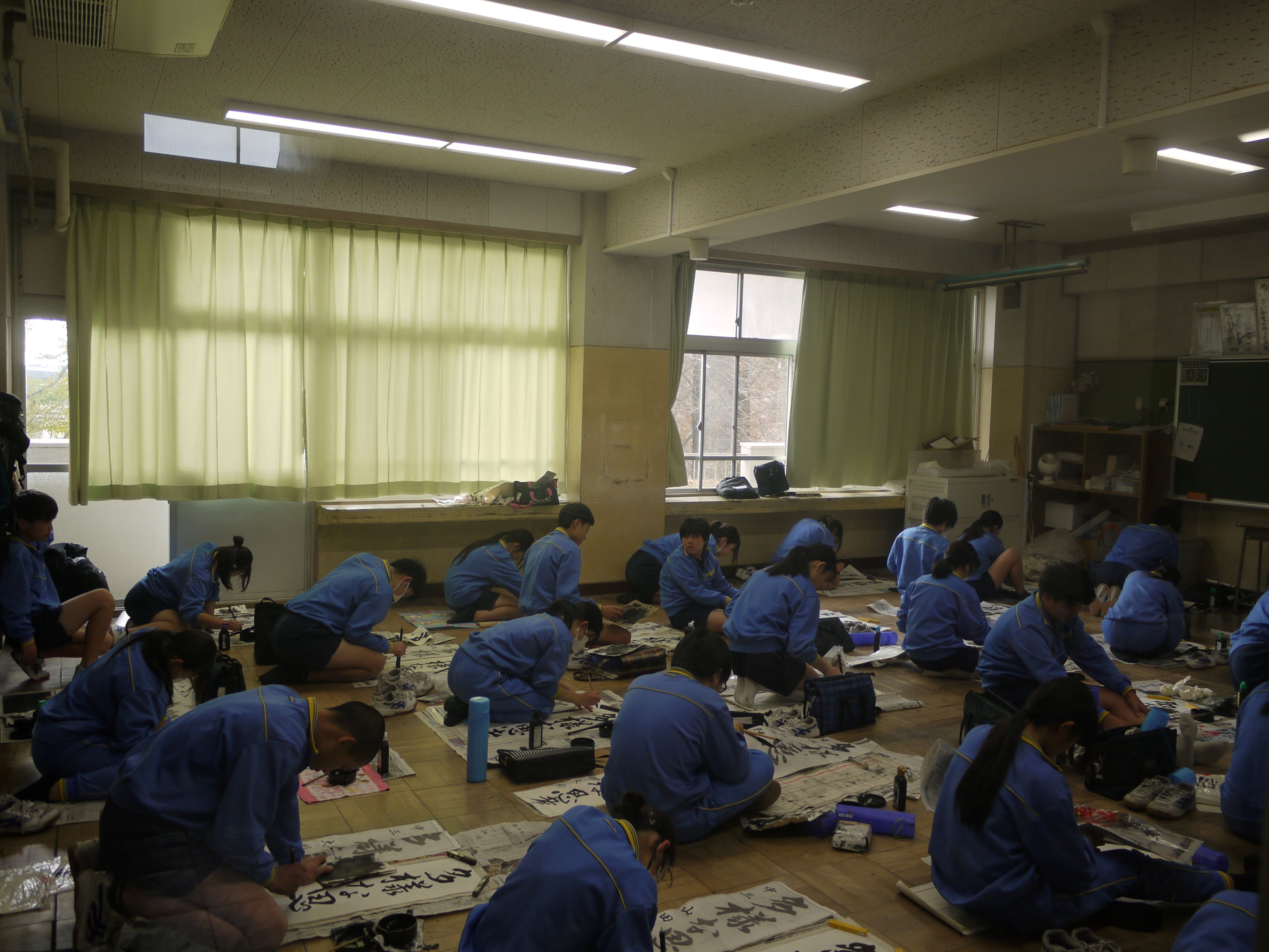 2学期も残すところあと1週間、そして、2025年も残り半月を切りました。この時期に校舎を回りますと、各学年から墨のにおいがしてきます。集中した雰囲気で、書初めに取り組んでいる姿を見ることができます。また、3年生は校長面接を行っております。緊張した面持ちではありますが、しっかりと自分の考えを伝えていました。急に寒くなってきましたが、体調管理に気を付けて残りの学校生活も過ごしてほしいと思います。